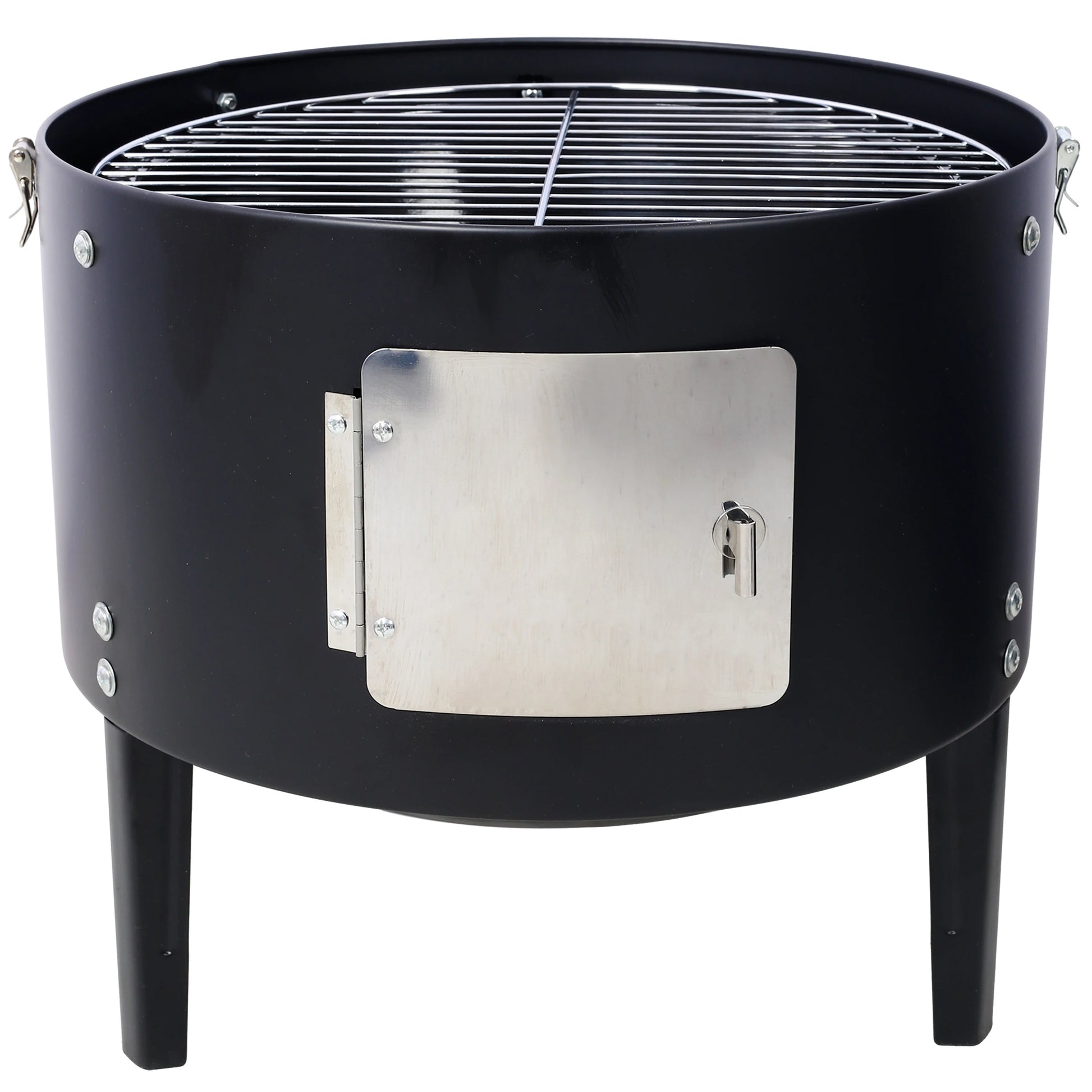 17 Inch Steel Charcoal Smoker, Heavy Duty Round BBQ Grill for Outdoor Cooking, Black