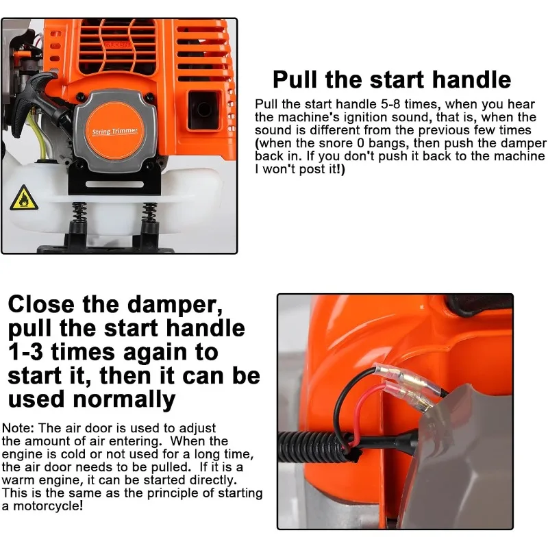 - High Performance Engine: The gas weed eater is equipped with a powerful 52cc two-stroke gasoline engine with 3.1 HP and a maximum speed of 9,500 rpm, which delivers more power to efficiently mow larger branches and easily handle demanding cutting tasks