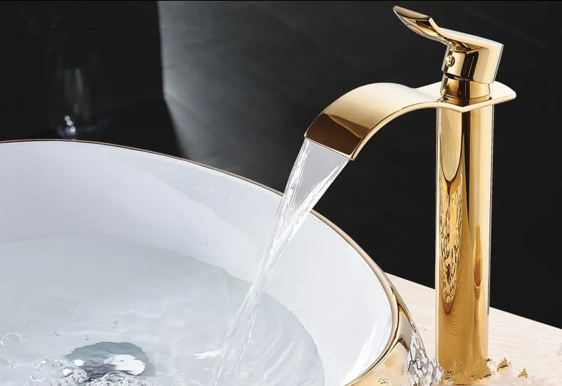 Tuqiu Gold Bathroom Faucet Waterfall Basin Faucet Single handle Basin Mixer Tap Bath Faucet Brass Sink Water Crane Tap