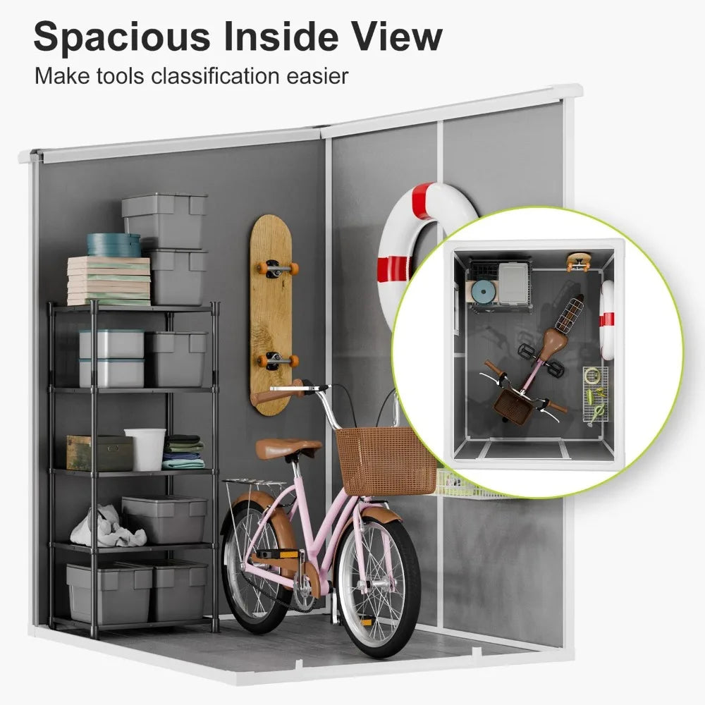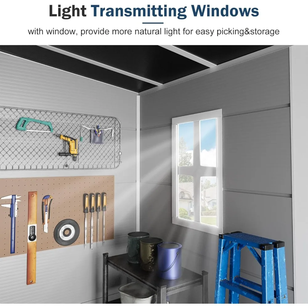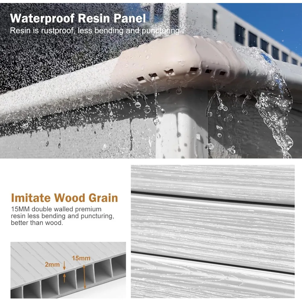 Premium Durability and Weather Resistance: Crafted with 14mm tough double-wall resin and an impact-resistant dark floor, this storage unit ensures long-term durability. It's waterproof and moisture-proof panels, along with UV resistance, guarantee worry-free use in diverse weather conditions.