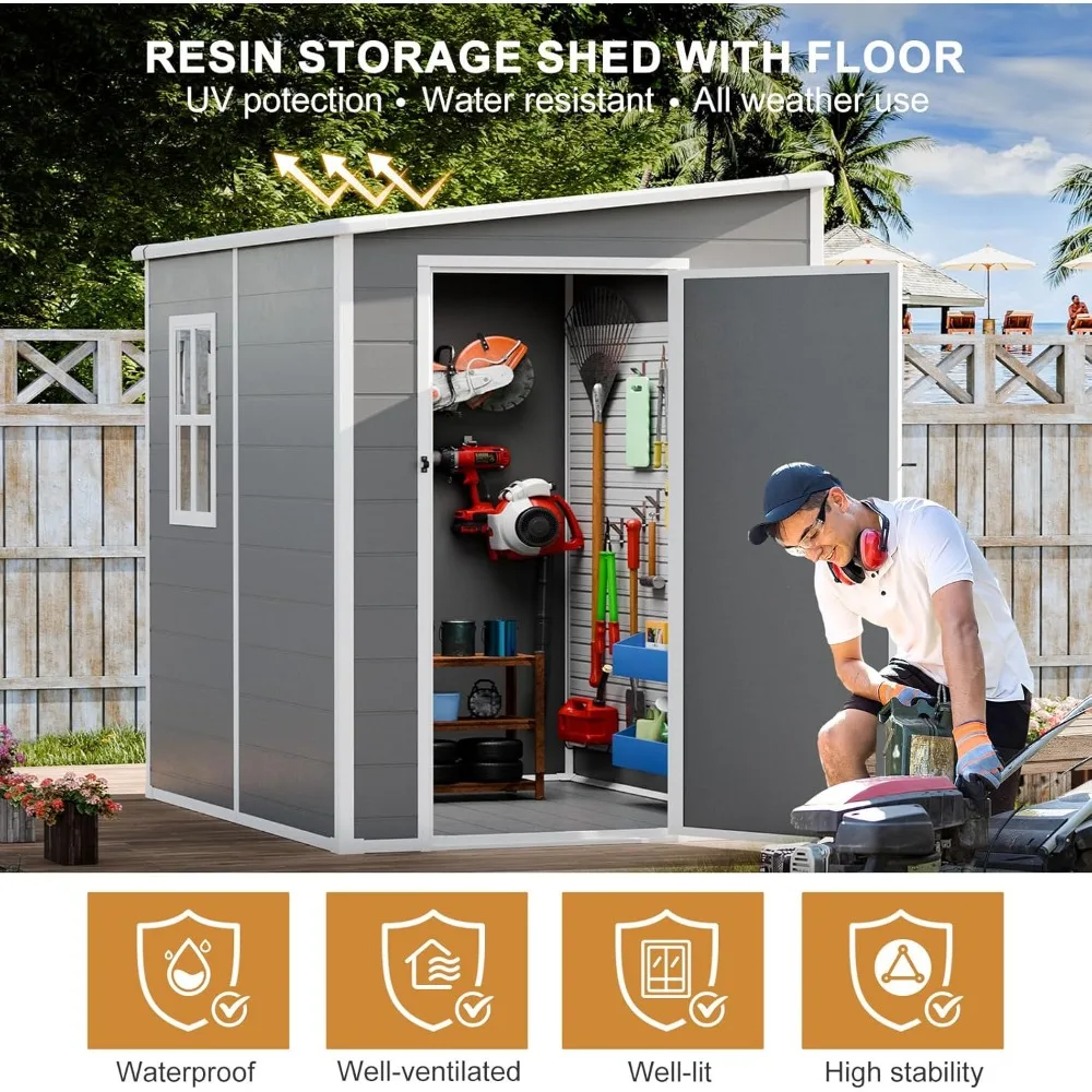 Waterproof Plastic Outdoor Storage Shed, 5x4 Feet with Floor, Includes Window, Lockable Door, and Garden Tool Storage